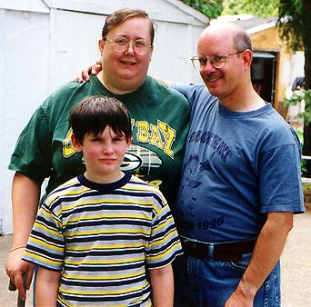 This picture of Charlie, Wendi and Joe Petitt was taken on August 8, 1999 at Charlie’s parents’ home in Janesville, Wisconsin. It was first published on a family page on AOL (America OnLine) in May of 2000. It later appeared on the Family Profile page of Ummamum’s Hideout (which was later renamed Ummamum’s Kingdom). That page was finally moved to The Oo Kingdom and was renamed About Our Family. This picture remained on the page until December 12, 2001, when it was replaced by three smaller, individual pictures.