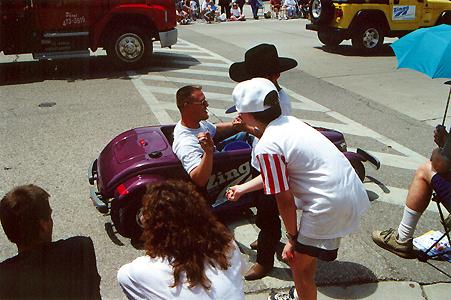 This guy was passing out candy to the children. That’s Joe (our son) in the white hat and red, white and blue shirt.
