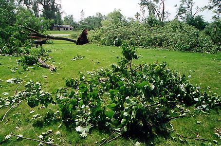 Just inside the park, broken limbs and uprooted trees are everywhere.