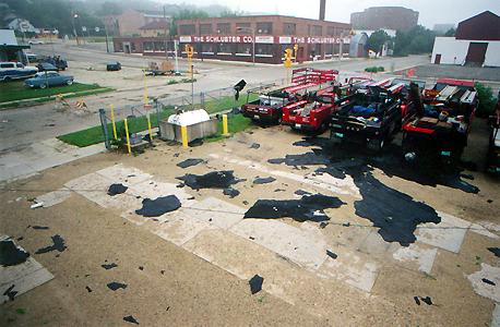 The shingles were blown by a northwesterly wind, while the wind that toppled the billboard only a short distance away was clearly southwesterly. The wind shear must have occurred right over the Adams building!