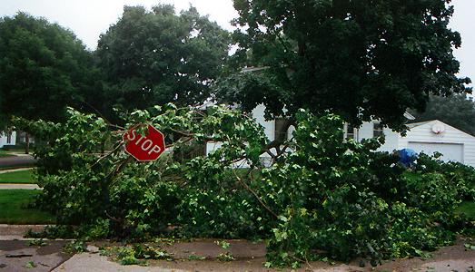Falling trees took a stop sign with them on North Palm Street at Mineral Point Road.