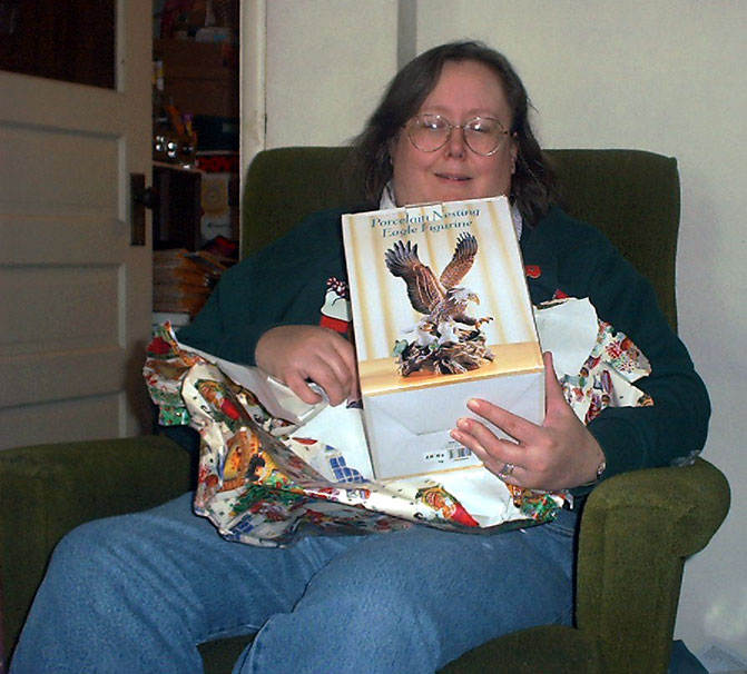Joe gave Wendi a porcelain figurine of an eagle.