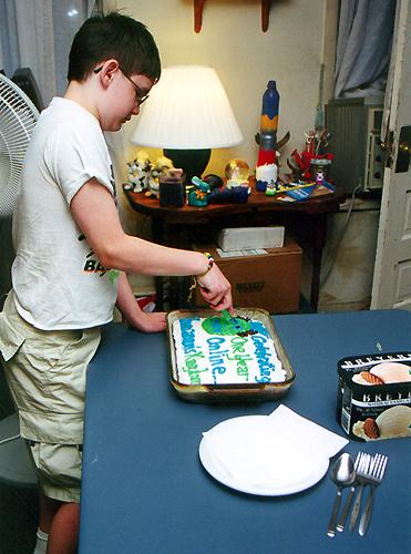 Speaking of dessert: We let Joe cut the cake. After all, he is the one who designed and created UmmaMummamon. He took great pleasure in eating part of the head of UmmaMummamon on the cake, which included chocolate chips for the hair!