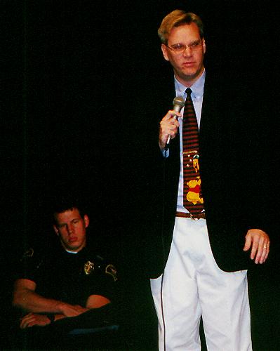 Here, the District Attorney for Rock County is speaking to the students. Behind him, seated, is Officer Jeff Jacoby, known to the students as “O.J.”