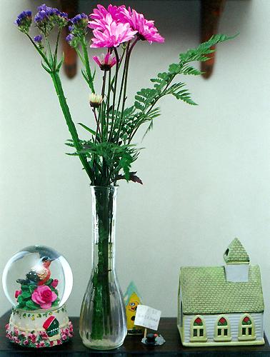 I (Charlie) bought Wendi these flowers for Mother’s Day (on Mother’s Day! Another case of last-minute preparation). They were displayed on top of the TV in the living room.