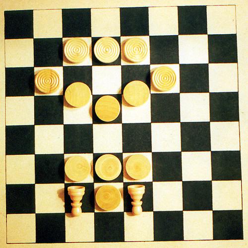Wendi and Joe played checkers that evening, and later, Joe and I played chess. But Joe found another use for the checkers and the chessmen; he made an Ummamum face with them!
