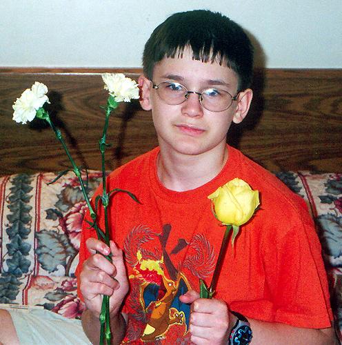 Joe is holding the rose and carnations we were given at the graveside ceremony.