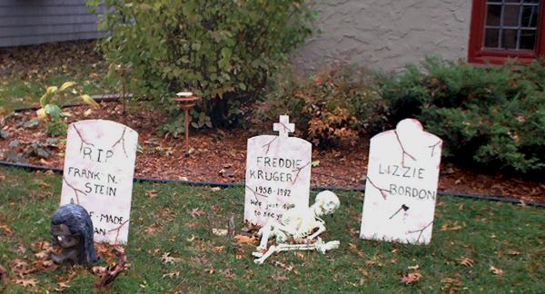 Three grave stones provide the accent for Halloween this year, at this home on Columbus Circle.