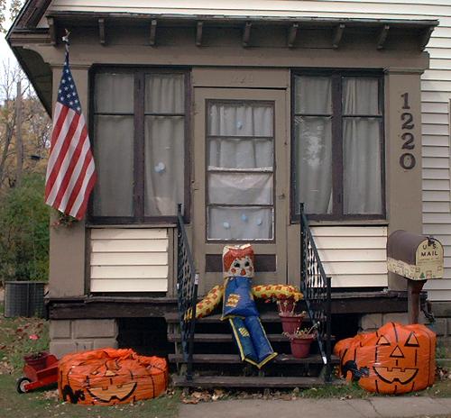 This place on West State Street looks pretty festive, with its American flag, pumpkins and a scarecrow.
