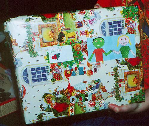 Oh Boy — This package bears both the Ummamum Guy and the Ummamum Girl! You see, Joe put the Ummamums on all of my presents to get me back for “driving him crazy” with the Ummamum sounds all season. (But I did the Umma Claus on his present.)