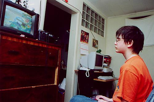 Christmas night: Joe entertains himself with his new video game, Super Smash Bros. for Nintendo 64.