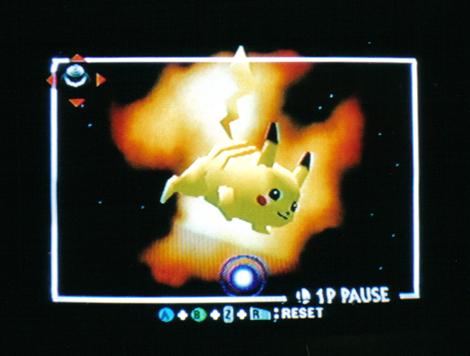 Speaking of Pikachu, here is Pikachu in midair, captured in a screenshot of Super Smash Bros. on Nintendo 64 (March 20, 2002).