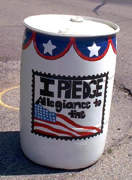 Someone painted up a bunch of barrels last fall, in patriotic designs. They are still on display outside the post office in Janesville, Wisconsin.