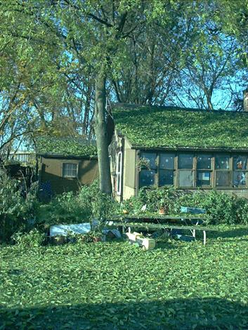 This is something you don’t see every day: autumn leaves falling from trees while still green! Taken at a neighbor’s house on November 1, 2002 at 8:07 a.m.