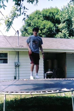 Joe jumps on a trampoline at a friend’s house on July 4, 2002.
