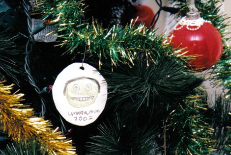 The Ummamum ornament Joe made for Charlie is proudly displayed on our Christmas tree. Taken January 2, 2003.