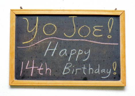 The chalkboard message is changed. It now reads: “Yo Joe! Happy 14th Birthday!” (January 17, 2003)