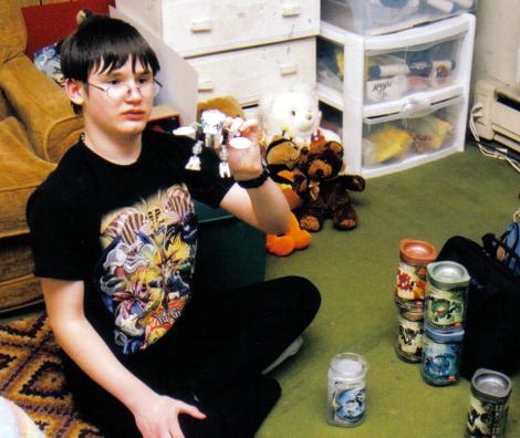 Joe holds up the Lego® Bionicle toys we got him for his birthday.