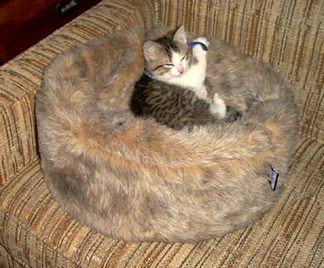 We bought a cat bed for Shadow, but so far she won’t sleep in it. But she will occasionally crawl into it and rest for a few minutes.