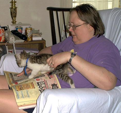 As Wendi was looking up a number in the phone book, Shadow climbed up on her. Was she trying to help?