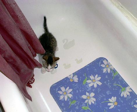 Kittens love to explore. We found Shadow in an interesting place this morning: in the bathtub!