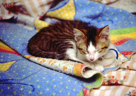 Shadow lies asleep on our bed. (May 12 at 4:51 p.m.)