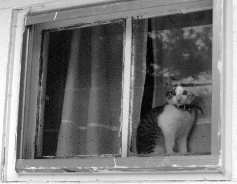 Doing the roofing work afforded me a rare opportunity to photograph Shadow in the east upstairs bedroom window, from eye level.