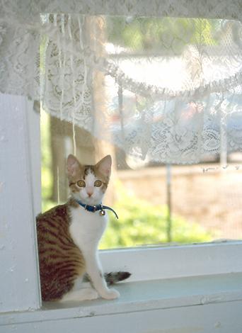 Now Shadow sits in the window sill and stares, wide-eyed, at the camera.