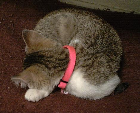 Shadow liked to fall asleep on this brown blanket, on a metal shelving unit in the master bedroom. Taken June 14 at 10:14 p.m.