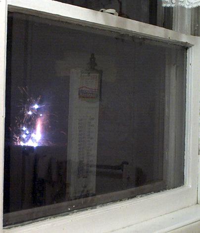 A neighbor boy and his girlfriend were lighting Fourth of July fountains in their back yard. I shot this photo through our kitchen window. (June 14 at 10:29 p.m.)