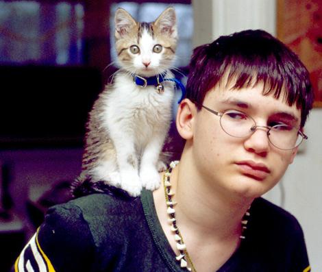 Shadow sits wide-eyed atop Joe’s shoulder. (May 8 at 7:25 a.m.)