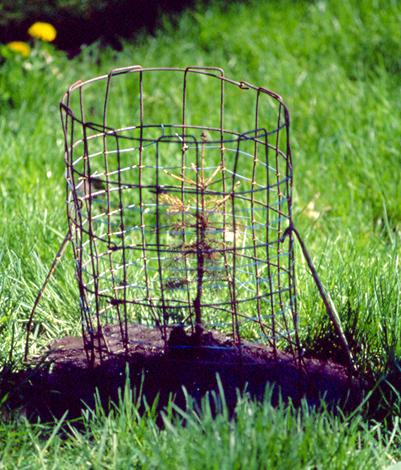 Joe’s grandpa (my dad) used to put wire baskets around small trees to keep small animals from destroying them, so I followed suit. Unfortunately my efforts were in vain; the tree was already dead. A few weeks later I had to throw away what was left of it.