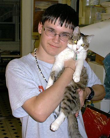 Joe holds Shadow in the dining room. (September 3 at 9:30 p.m.)