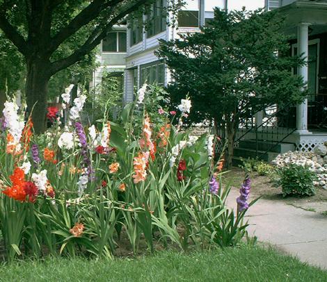 Beautiful summer flowers grace a lawn a few blocks away, on Academy Street. (July 22 at 11:19 a.m.)
