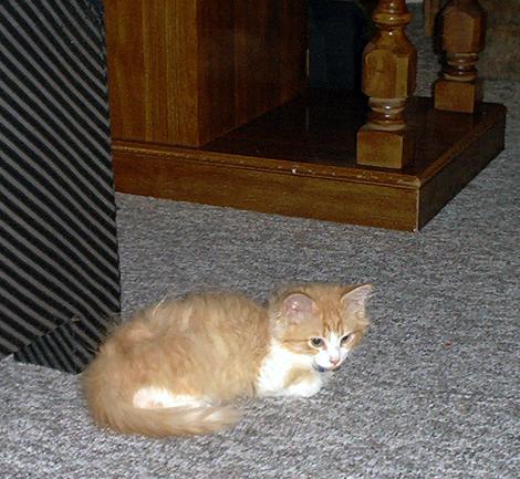 Sunny looks comfortable on the floor by the blue sofa, with the coffee table in the background. A cropped version of this photo appeared on our Family page for a while. (October 15 at 11:26 p.m.)