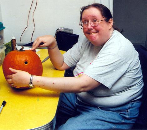 Wendi does an Ummamum face as she carves a similar face on a pumpkin (see the finished product on the next page).