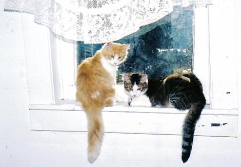 Here’s another nice shot of our two favorite felines in the window (December 21).