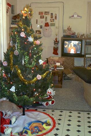 Here’s another shot of the tree, showing the skirt and other room decorations.