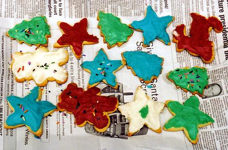 On a last-minute impulse, I (Charlie) baked a batch of Christmas cutout cookies late on Christmas Eve and frosted them all myself.