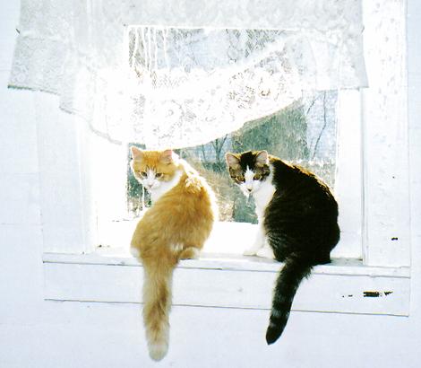 I caught this classic shot of Sunny and Shadow in the mud room window, on December 21.