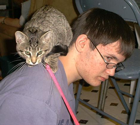 Stormy sits on the back of Joe’s neck. (October 10 at 8:14 p.m.)