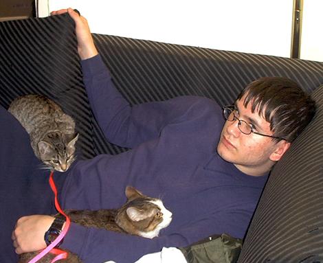 We managed to get Stormy and Shadow together on Joe’s lap, separated only by a few inches. (October 11 at 2:32 p.m.)