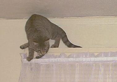 Desperately, Stormy searches for the safest way down the bedroom curtain (October 10 at 1:54 p.m.), and…