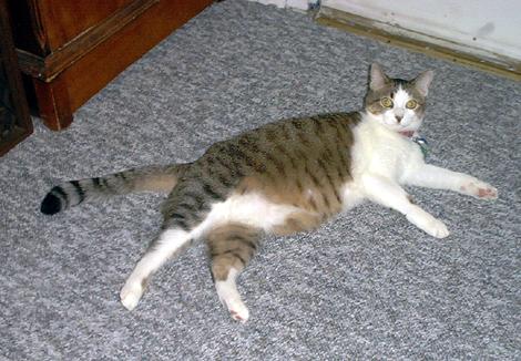 Shadow, lying on the floor by the front door, stares back at the camera as if to ask, “Am I doing something wrong?” (September 23 at 3:53 p.m.)