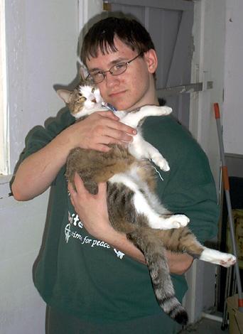 Joe cuddles with Shadow in the back of the mud room, September 27 at 3:47 p.m.