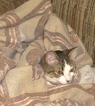 Only Shadow’s head is visible above the blanket. (July 31 at 2:42 p.m.)