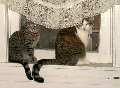 Window watchers: our two females, Stormy and Shadow, stare at Joe, who is taking their picture (November 19, 2004 at 11:38 a.m.).