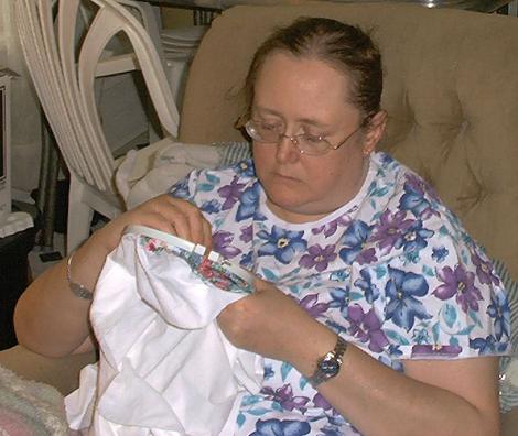 Wendi is busy embroidering a pillow case (November 19, 2004 at 11:45 a.m.).