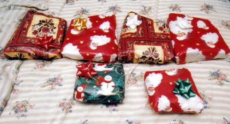 Joe wrapped these six Christmas gifts for others in our family, on Christmas Eve.