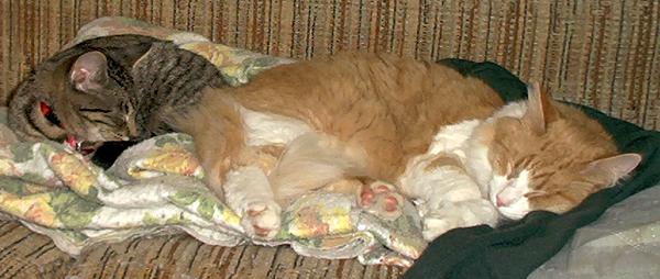 December 31, 2004 at 3:08 p.m.: Stormy and Sunny are sleeping on the couch, a by-now-familiar scene, while…
